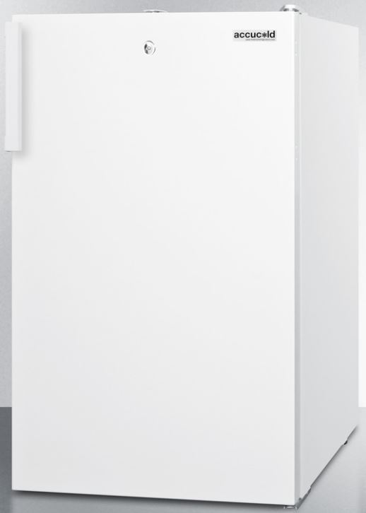 Sized just under 20" wide, the FS407LW is a counter height all-freezer designed for freestanding use. It features a white exterior with a user-reversible door swing. A factory-installed lock is located towards the top of the door, making it easier to secure and access as needed. Two keys are included.