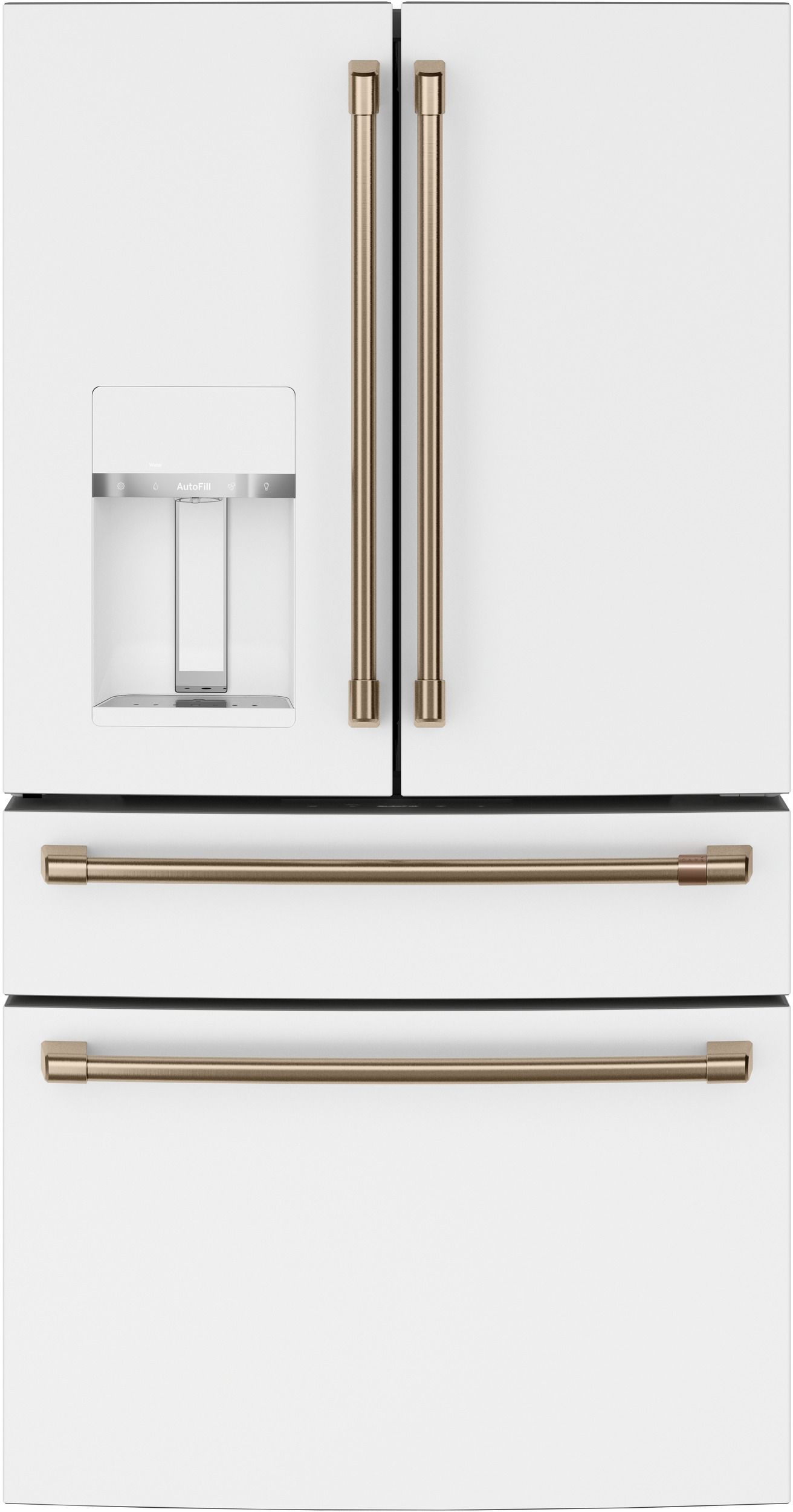 Your style is our substance. Find undeniable style behind every door with 4-door refrigerator from Café. Sophisticated aesthetic details invite you in to experience imaginative features, such as the convertible drawer with a Soft Freeze setting and a Hands-free Autofill dispenser for a refrigeration solution that fits your style.Read More