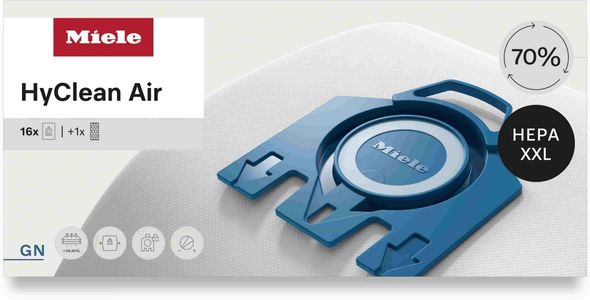 Miele HyClean FilterBags are perfectly engineered for your Miele vacuum cleaner to enable constantly high suction power. Years of development work and close collaboration between the Miele engineers have gone into ensuring that each HyClean bag noticeably improves suction power – throughout the entire service life of your appliance.