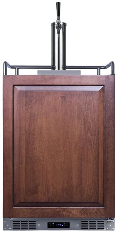 The SBC682PNR is a full-sized beer dispenser approved for both residential or commercial use. Sized at just 24" wide, it features a front-breathing system for built-in installation and a fully-finished cabinet that also allows freestanding use, with an included caster set for optional mobility. The exterior features 304 grade stainless steel construction for safe, weatherproof use in the outdoors. The door is designed to accept overlay panels (sized at 29 3/4" H x 23 5/16" W at a 3/4" thickness) to allow you to create a custom look to best suit your own kitchen design. This unit ships with a right hand door swing. For a left hand version, add option "LHDHinge." Additional features include a removable two-piece stainless steel drip tray to collect spills and a chrome guard rail to help keep glasses and mugs in place. This unit has a sealed rear for added protection from the elements.