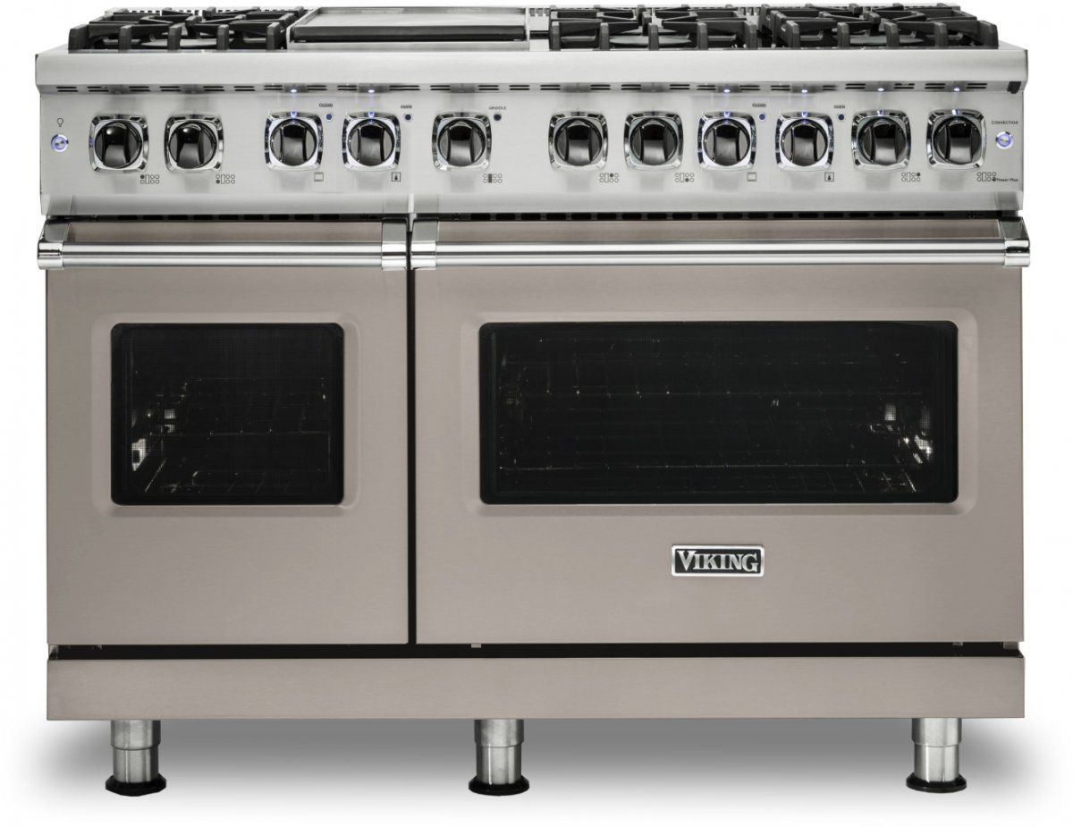 High-performance cooking modes include bake, convection bake, TruConvec™ Convection Cooking, convection roast, broil, convection broil, convection dehydrate, and convection defrost; left oven in 48” wide model includes proofing mode